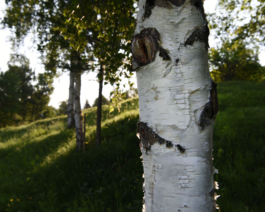 Le bouleau pleureur(Betula pendula Roth) (famille des Bétulacées) est un arbre qui peut atteindre 30 mètres de haut. Les bouleaux ont une croissance très rapide et sont souvent les premiers arbres à coloniser une région. Ainsi, le bouleau a été l’un des premiers arbres à recoloniser l’Europe centrale après les périodes glaciaires. Aujourd’hui, on le trouve de préférence sur les rives des cours d’eau, dans les marais et dans les forêts humides. Au printemps, son tronc est intensément irrigué par la sève. L’écorce des jeunes arbres est blanche comme la neige et s’exfolie en bandes horizontales. Chez les arbres plus âgés, c’est surtout la partie inférieure du tronc qui présente une écorce craquelée et bombée, alors que plus haut, elle est lisse et blanche ou blanc jaunâtre. Les branches du bouleau forment des angles aigus et sont très retombantes. Les plus jeunes pousses présentent souvent de nombreuses glandes résineuses. Ses feuilles ont un contour triangulaire avec une pointe allongée. Au début, les feuilles sont très tendres, densément ponctuées de glandes et collantes. Les bouleaux pleureurs fleurissent d’avril à mai avec des inflorescences en forme de chatons, chaque chaton pouvant produire plusieurs millions de grains de pollen qui peuvent être disséminés très loin. Un bouleau adulte produit également plusieurs millions de graines, mais leur durée de vie est très courte. Le bouleau réunit ainsi la vie et la mort qui débordent.
