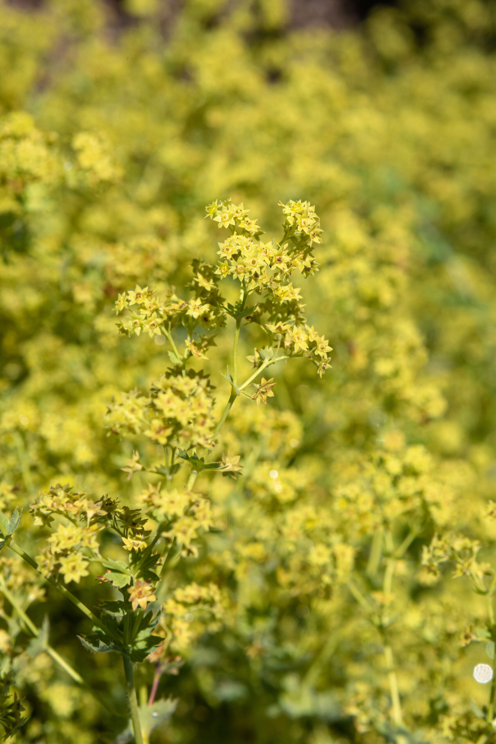 Les alchémilles sont très diversifiées et ne se distinguent souvent que par des caractéristiques difficilement reconnaissables. L’identification exacte d’une plante est généralement très laborieuse (même pour les botanistes expérimentés) – souvent même déroutante – et n’est généralement possible que lorsque la plante a déjà produit des fruits. A première vue, on pourrait penser que les espèces d’Alchemilla ne sont pas clairement définies et qu’elles sont soumises à une forte variabilité, c’est-à-dire que leurs caractéristiques changent légèrement au fil des générations. Or, c’est précisément le contraire qui est vrai. L’ouvrage spécialisé “Flora der Schweiz” de Hess, Landolt, Hirzel nous apprend que “tous les spécialistes du genre Alchemilla décrivent la constance des petites différences entre les espèces sur de vastes zones géographiques comme le seul exemple existant chez les plantes à fleurs”. Les espèces d’Alchemilla, bien que d’une diversité difficile à cerner, sont donc extraordinairement stables dans leur forme, elles se reposent sur elles-mêmes. La nature conservatrice de la vie s’exprime également dans le fait que la plante contient de puissantes substances antioxydantes”.