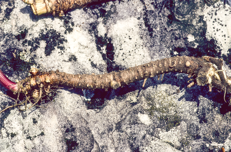 L’incident suivant illustre le grand pouvoir de cette plante. Notre cueilleur de plantes médicinales, qui étudie les effets des plantes médicinales et toxiques en les goûtant lui-même comme tout vrai connaisseur de plantes, s’était un jour trompé dans le dosage d’une plante de montagne très toxique. Il a mangé un morceau de racine de cyclamen europaea et a subi un effet dramatique en peu de temps ; la trachée a commencé à gonfler et à se rétrécir rapidement et la respiration est devenue dangereusement difficile. En désespoir de cause, il s’est souvenu des anciens récits sur les effets fantastiques de la très estimée racine de maître. Au dernier moment, au bord de l’asphyxie, il a trouvé une racine de maître, l’a déterrée et s’est versé son jus dans la gorge. Au bout d’une minute, sa trachée commença à se dilater et au bout de 10 minutes, l’effet du poison avait complètement disparu et il put à nouveau respirer librement.