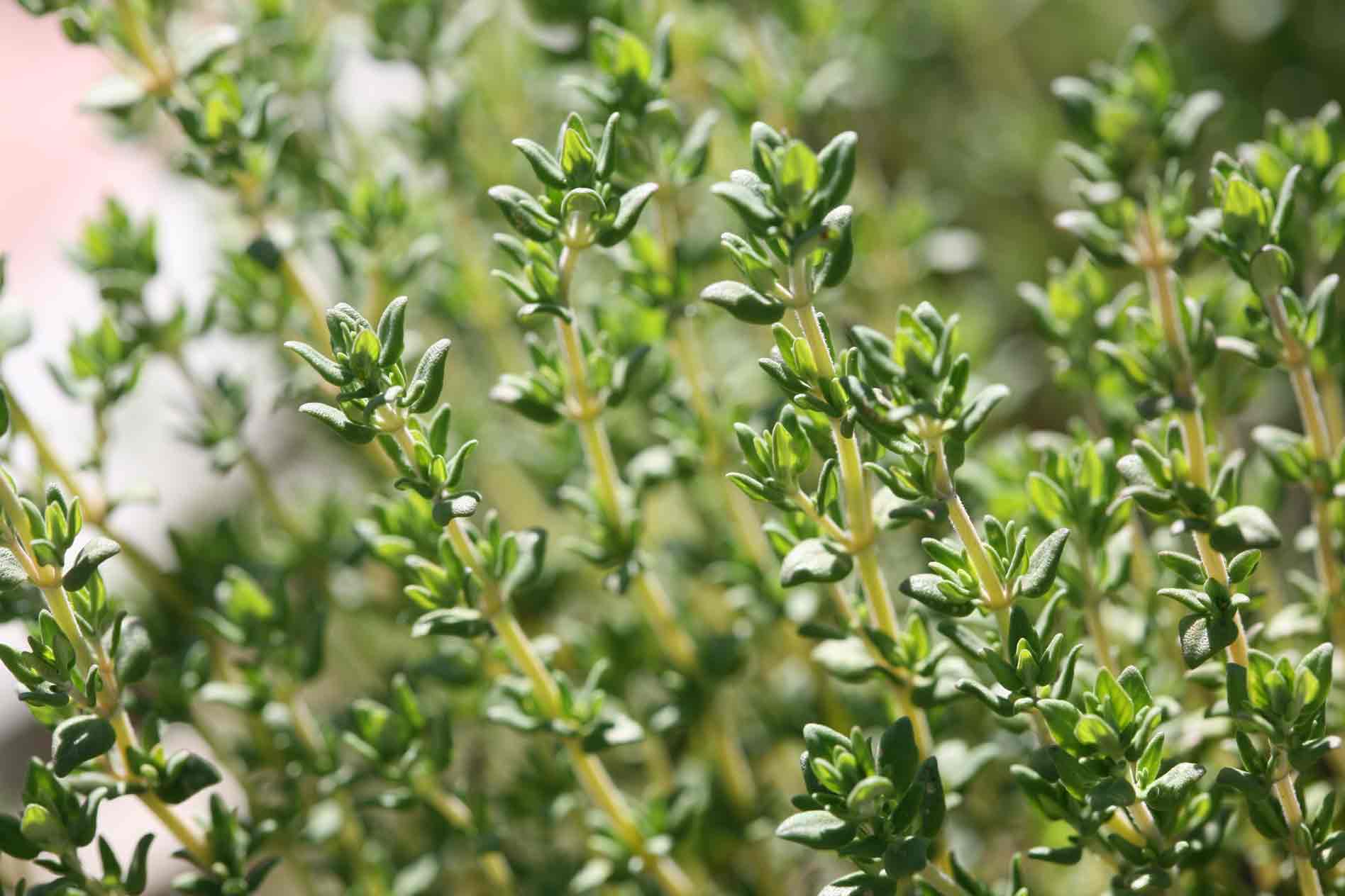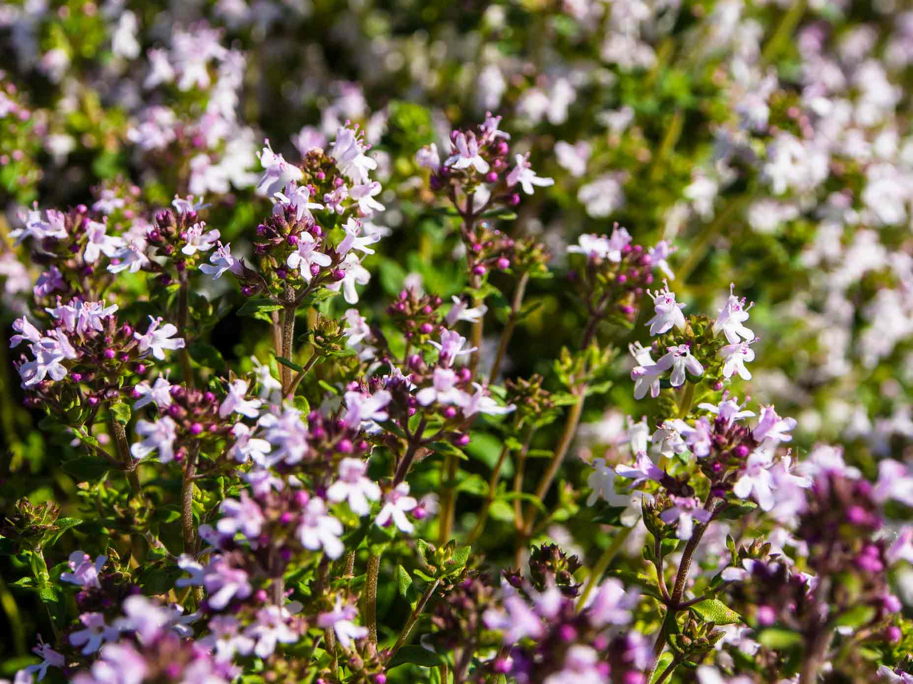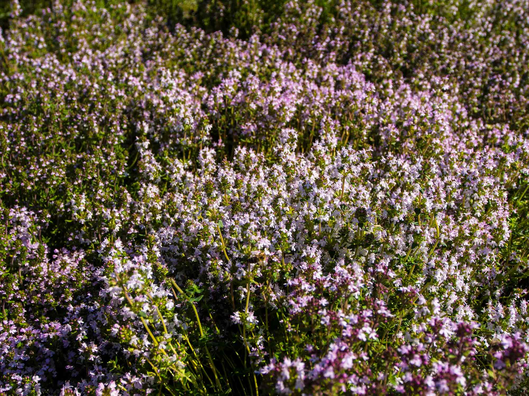 Le thym, Thymus vulgaris L., est l’une des plantes médicinales les plus riches en huile essentielle. Les composants caractéristiques de l’huile essentielle sont le thymol et le carvacrol. Ces deux substances sont en outre d’une grande importance pour la qualité et l’effet pharmaceutiques. En tant que plante aromatique populaire, le thym possède un arôme agréablement épicé. Son goût est à la fois aromatique et légèrement amer. En outre, on trouve typiquement dans le thym des flavonoïdes, des triterpènes et des acides phénolcarboxyliques.