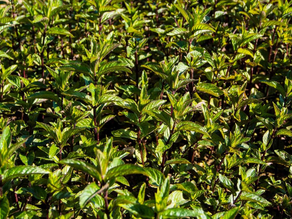 Mentha piperita L., die Pfefferminze, gehört zur Familie der Lippenblütler (Lamiaceae). Sie soll in England spontan aus den Minzen-Arten Mentha spicata und Mentha aquatica entstanden sein und wird 1696 erstmals erwähnt. Heute wird die Art in grossem Massstab auf der ganzen Welt angebaut. Sie ist sommergrün, ihre oberirdischen Teile sterben also im Herbst ab und treiben im Frühjahr wieder aus. Gerne treibt sie unterirdische Ausläufer, was im Anbau zur Verbreitung eingesetzt wird. Wird sie aus Samen verbreitet, gibt es eine Aufspaltung und es werden nur weniger wertvolle Minzen erzeugt. Ihre Stängel sind vierkantig, oft rötlich überlaufen, unter guten Verhältnissen werden sie bis 100 cm hoch. Die Laubblätter, welche länglich-eiförmig bis länglich-lanzettlich sind, stehen kreuzgegenständig an der Pflanze. Bereits mit gutem Auge lassen sich auf der Blattunterseite eine grössere Zahl an Öldrüsen erkennen, welche das ätherische Öl mit seinem frischen, kühlenden und entspannenden Duft speichern. Vom Juni bis in den Juli hinein blühen die Pflanzen mit kleinen lilafarbenen Blüten, die in Scheinquirlen zu ährenartigen Blütenständen zusammengezogen an den Enden der Triebe stehen.